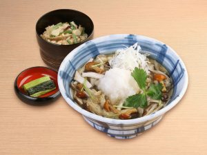 秋の味覚のきのこがたっぷり。大根おろしが絡んで体に優しいほこりと温まる一杯です。